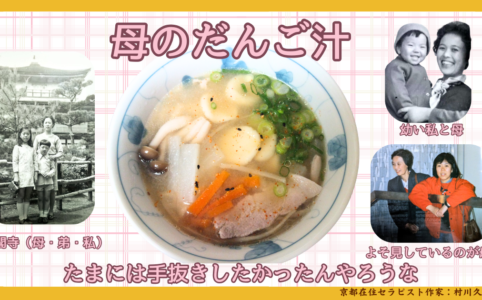 エッセイ 母のだんご汁~たまには手抜きしたかったんやろうな Posted on 2026年1月20日 by murakawakumu0108 / 0件のコメント 「おかあちゃんは、だんご汁が好きやったな~」と母のだんご汁を思い出しました。 実は夕食直前に、ご飯を炊いていなかったことに気づいて、慌てて「花山うどん」の「鬼ひも川」を茹でて、胡麻みそダレで頂いたから...