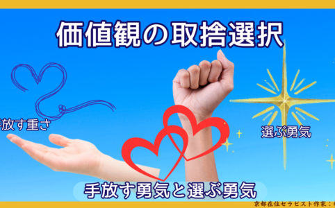 心の制限を外す/エッセイ 価値観の取捨選択~手放す勇気と選ぶ勇気 Posted on 2026年1月27日 by murakawakumu0108 / 0件のコメント ▶社会は大変革の時 今、社会は大きく変わろうとしています。価値観が画一的だった時代は過ぎ去り、今は個人の好みや考え方が反映される多様な時代です。 今、私たちは価値観の取捨選択を迫られています。 激動する社会に逆行するこ...