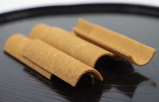 京都のお土産として有名な八つ橋は、米粉・砂糖・ニッキを混ぜて蒸したものを焼き上げたもので、半円に湾曲した長方形の瓦型をした煎餅のことです。