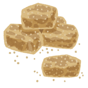 ✅️黒砂糖(黒糖): 徳川吉宗の奨励や、琉球(沖縄)や奄美からの輸入(薩摩藩の専売品)により、白砂糖よりも安価に入手できました。黒砂糖独特の強い風味とコクは、庶民に好まれました。