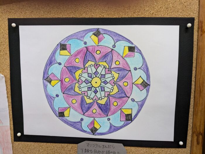 曼荼羅はデイケアルームの作業スペースで描いていたのですが、完成すると嬉しくて、デイケアルームにいた人に見せ歩いてしまいました。子どもみたいですね(笑)
