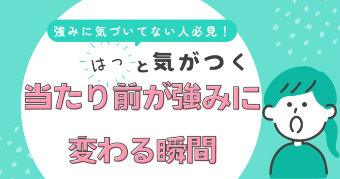 私にとって当たり前だったことが、本当は私の強みだったように、あなたにとって当たり前のことが、あなたの強みだったりします。きっと、本人は当たり前過ぎて、強みだとわかっていないだけなんです。