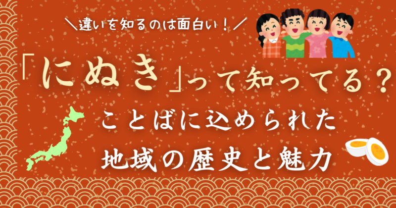「にぬき」とは、関西でゆで卵を指すことばです。「煮抜く」からきた方言だと言われています。地域によって同じものでも呼び方が違うことってよくありますね。