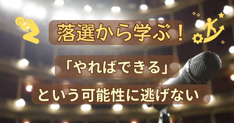 オーディションやコンテストだけでなく、チャレンジすることは、厳しい現実と向き合わなければなりません。でも、向き合うことで、自分を客観的に見ることができるのです。