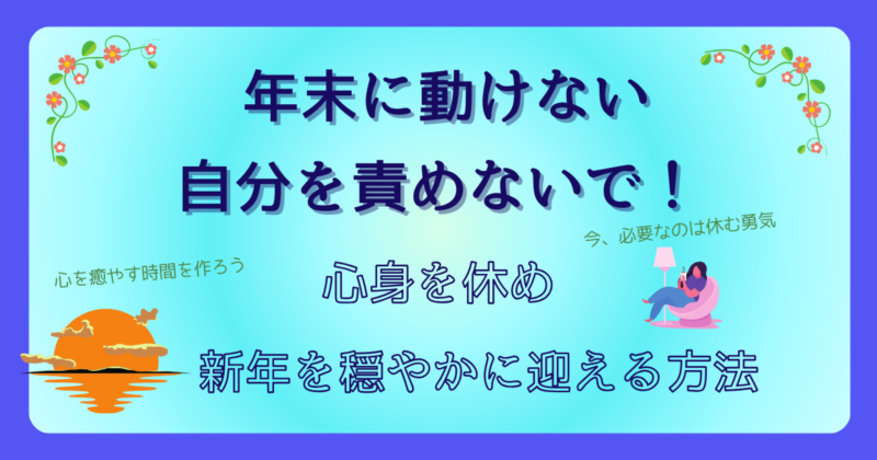 このブログでは、自分を責めず、心を休めることがどんなに大切なのかを、私と一緒に考えましょう。年末に動けない自分を責める気持ちを手放し、心と体をリセットする方法をお伝えします。