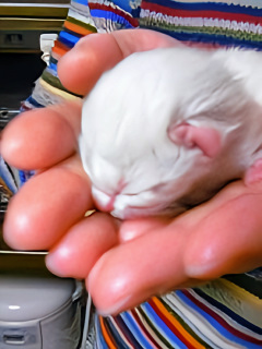 特に、ピユの衰弱が激しく、毎日、動物病院に連れて行って点滴をしてもらっても、ピユは骨と皮だけにやせ細ってしまいました。餌も液体総合栄養食にして、シリンジで強制的にあげないと、受けつけなくなっていたのです。