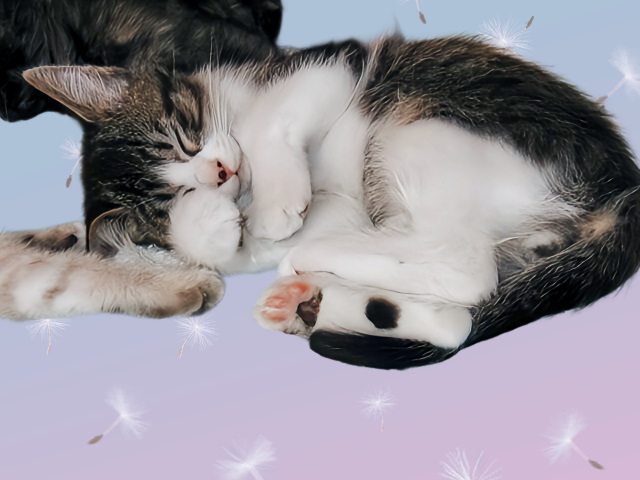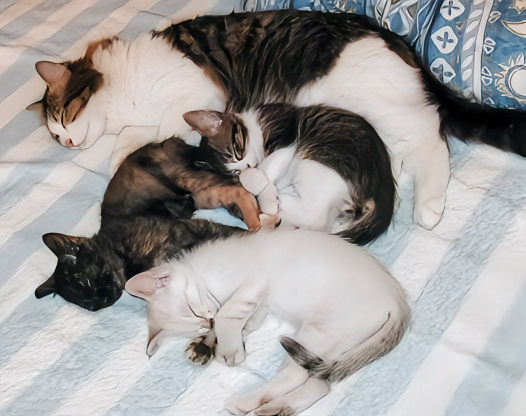 目覚めた時に、猫たちの温みやフワフワの毛を感じる時、「カリカリ」とドライフードを食べる音を聞く時、猫と暮らす幸せを感じました。