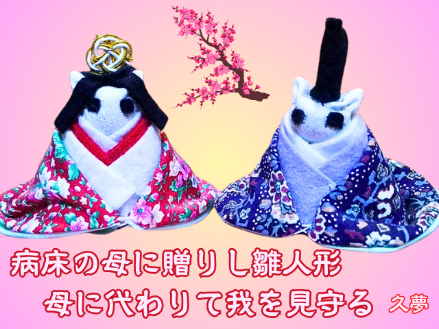 「病床の母に贈りし雛人形 母に代わりてわれを見守る 久夢」