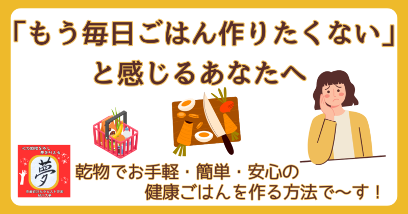 今日のブログでは、「ごはん作りがつらくなった50代・60代女性」のために、罪悪感を手放し、乾物を活用して「簡単で健康的なごはん」を楽しむ工夫を紹介しますね。