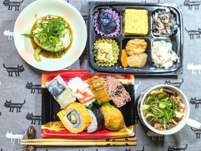 調理はしていませんが、ランチョンマットやネコちゃんの箸置き、ネコちゃんのお箸など、楽しむ心はたっぷりです✨️