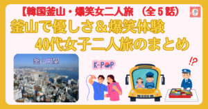 40代の私と同僚が春の釜山へ。コピー商品に出会ったり、韓国人アジョシと日韓カラオケ大会をしたり、いきなり濃厚すぎる初日を過ごしました。さて、2日目は…?