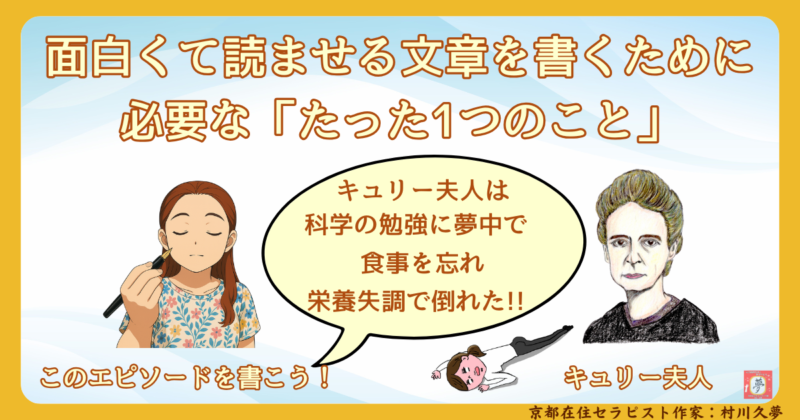 斎藤りゅう哉先生の文章術講座2日目、面白くて読ませる文章を書く実践練習で、キュリー夫人のこのエピソードを書きました。