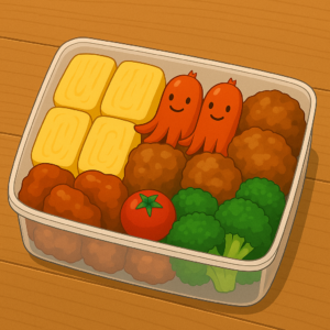 玉子焼き、たこウインナー、唐揚げ……。