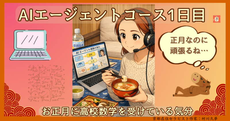 新年そうそう、「AIエージェントコース」なんて難しいコースの集中講座に参加しています。
