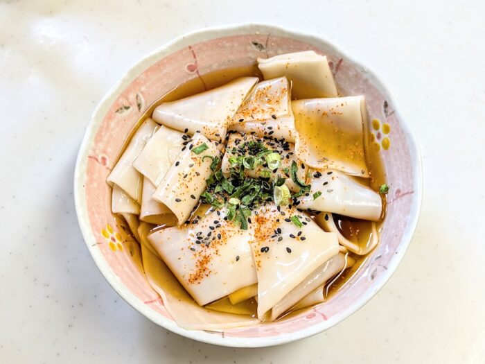 「鬼ひも川」は茹で上がると、幅が約5cmにもなる幅広うどんです。その食感は、もちもちしていて、私はうどんより、お団子をイメージします。