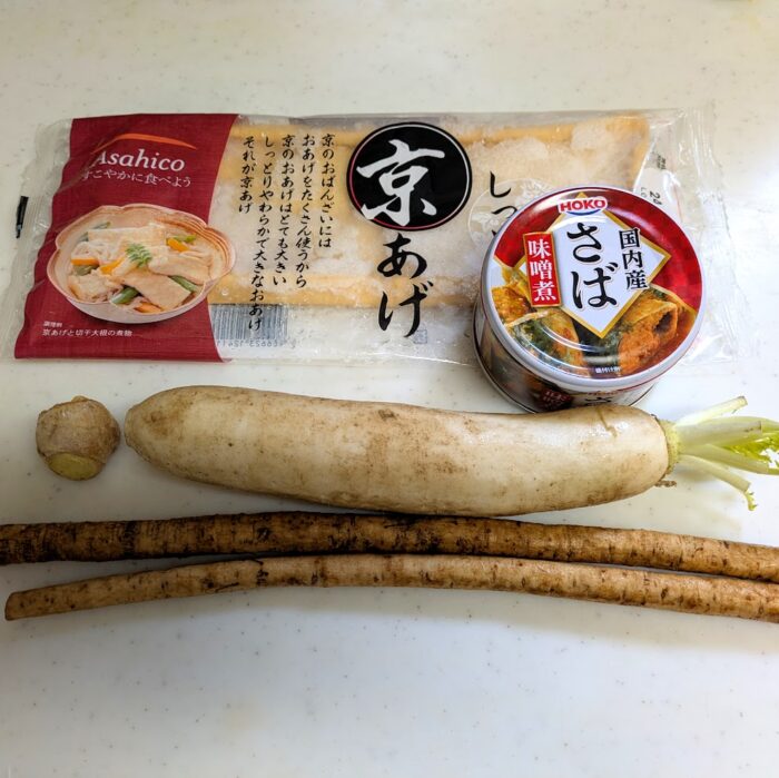 というのもお雑煮用に買った祝大根とごぼうが野菜室に、お揚げさんが冷凍庫に残っていて気になっていたんです。