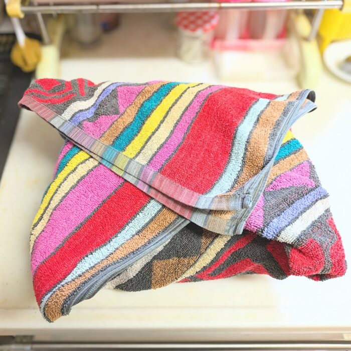 ③3分~5分くらい煮たら、蓋をして、新聞紙で包みます。新聞紙で包んだ鍋をさらにバスタオルで包み、1時間くらい放置します。