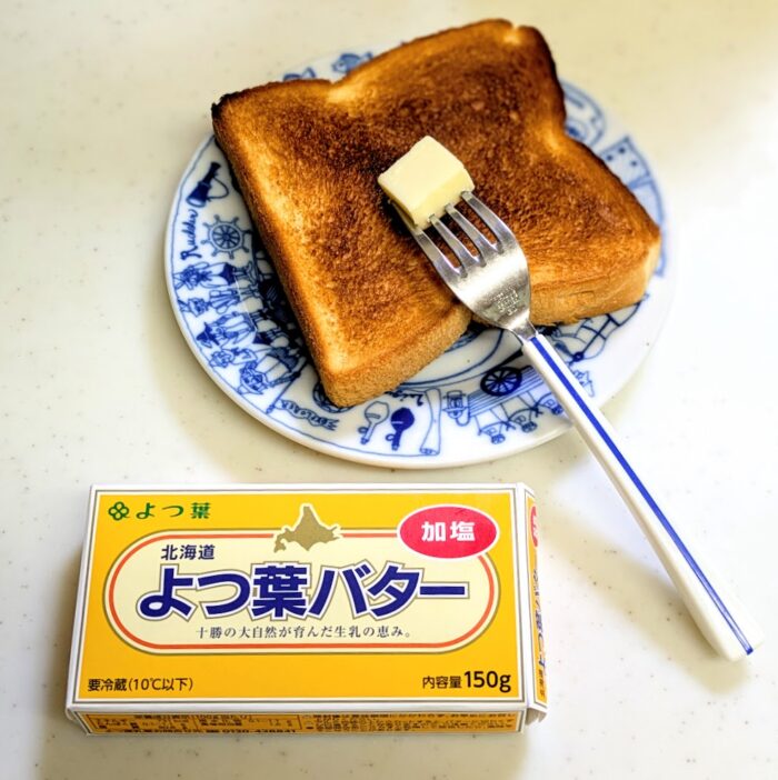 毎朝(毎昼😅)食べているバタートースト。私は端からバターを塗ります。