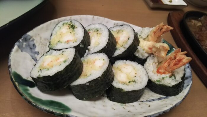 玉子焼き(伊達巻)、干瓢、きゅうり(三つ葉)とかが、にょろ~んと出てるじゃないですか? あれが美味しいんです。得した気分になるんです😁