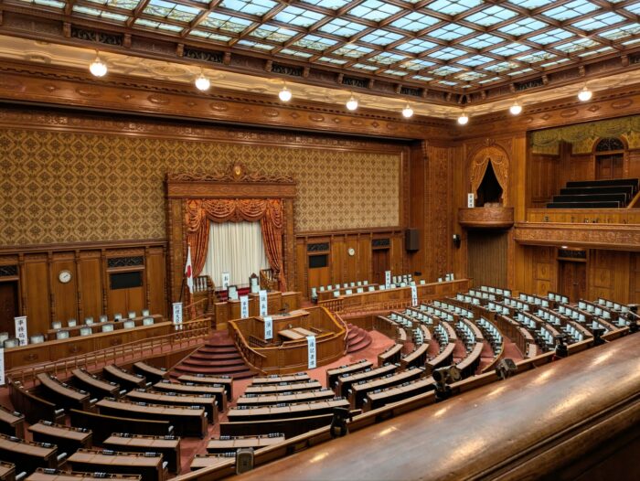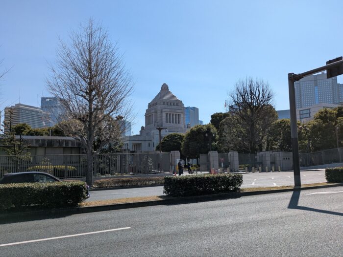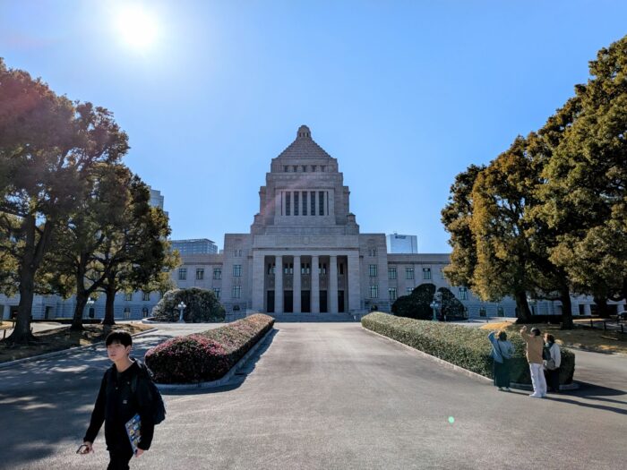午後は国会議事堂参議院の見学です。永田町駅付近は、警官が本当に多く、ものものしい雰囲気です。