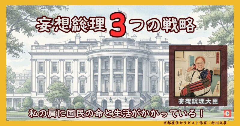 そこで村川久夢妄想総理大臣の3つの戦略を京ことばでご紹介します。