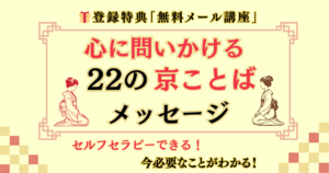 🎁無料メール講座の登録登録「京ことばセラピーメッセージ」は、やわらかな「京ことば」で、あなたの心に問いかけ、セルフセラピーできます。