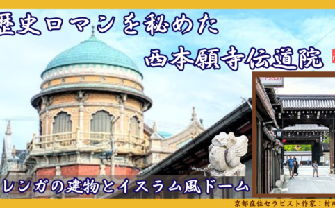 「この建物なんだろう?!」初めてその建物を見た時、エキゾチックな美しさに心惹かれました。赤レンガ造りなのに、ドーム型の屋根がイスラム風なんです! その建物は西本願寺伝道院でした。調べると伝道院には歴史ロマンが秘められ...